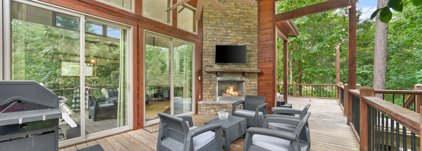 Welcome to Total Eclipse, a peaceful 1BR/1BA cabin nestled in a romantic setting amidst tall pines. Each room is warm and inviting, including the spacious covered deck w/ a hot tub, BBQ grill, and sitting lounge with a Smart TV and fireplace. Just a few steps off the deck, you'll find a fire pit, perfect for sharing stories under the stars. Inside, you'll enjoy a shuffleboard table and board games for your entertainment. Best of all, you’re just minutes away from Hochatown’s top attractions.